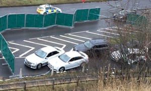 At the scene on the M62, a silver Audi with bullet holes in its windscreen was surrounded by other vehicles at the bottom of the off-slip of the westbound carriageway.