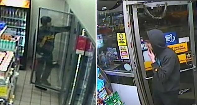 Now look at “Dorito boy.” This photo is supposed to prove that Jahar went into the Shell station to buy snacks. He too is a chin grabber. Also he may be left-handed, as when we see him take an item from the shelf with his left hand. On the right is, allegedly, Dun Meng making his escape from the SUV while it was parked at Shell. I am guessing, but only guessing, that both are actors.